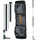 Телескопічний штатив розкріплюється між підлогою та стелею. Майданчик, на який встановлюється лазерний прилад, переміщається по всій висоті штатива, що дає можливість встановити прилад на потрібній робочій висоті.